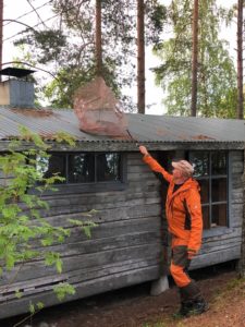 Juha Taskinen heittää norpalle vaarallisen katiskan saunan katolle Kalastajan Kanavan Perjantai-illan LivEssä 2020.