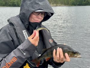 Kalastajan Kanavan Jyri & Anne-Maarit molemmat saivat The Jerkillä 49 cm ahvenet syksyllä 2024. Värinä oli BF-Baitfish eli ns. muikkuväri. Jyrin kala tuli dropshotilla offset-rigattuna ja Anne-Maaritin ahven ned-tekniikalla perinteisellä VMC:n isokitaisella jigipäällä. Lisäksi vieheellä nousi useita yli 40 cm ahvenia ja runsaasti ruokakalaa niin ahventa ja kuhaa.