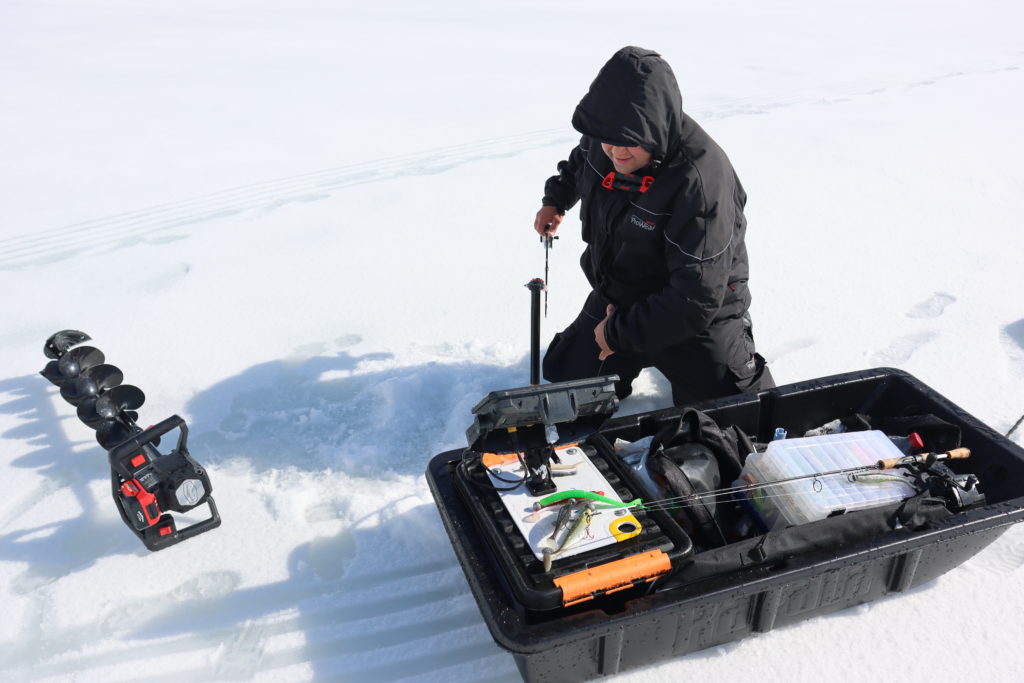 Live-luotaimen anturia varten tarvitaan iso avanto. 8-10 tuuman reiästä sopii anturi alas ja isompikin hauki ylös