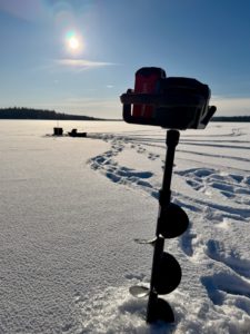 Live-luotaimen anturia varten tarvitaan iso avanto. 8-10 tuuman reiästä sopii anturi alas ja isompikin hauki ylös