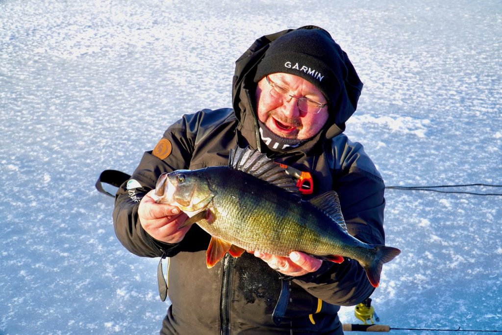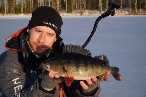 Vuosi alkoi tammikuussa pilkkireissulla Saimaalle. Kuvasimme samalla ison ahvenen pilkintävideota yhteistyössä Garminin kanssa asiantuntijoina Hannu Vesaranta ja Juho Mustonen. Ensimmäinen päivä meni odotuksiin nähden hieman pieleen suurimpien harvojen ahventen ollessa 30 cm luokkaa. Toisen päivän odotukset eivät olleet kovin korkealla haastavan kirkkaan sään takia. Päivä kuitenkin yllätti. Päivän aikana kaikille pilkkijöille yli 40 cm ahven. Hannulle 43 cm, Juholle 44 cm ja Jyrille ennätysahven 49,5 cm. Jyri kotimaan pituusennätyksen rikkonut kala nousi ”pökäleellä” välivedestä, eli vieheenä Z-man Big TRD värissä The Deal. Hannu ja Juho käyttivät pääsääntöisesti Pääevän tasapainopilkkejä.