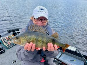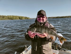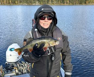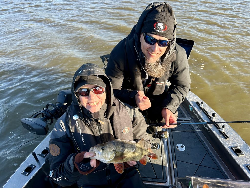 Lokakuussa on meillä yleensä myös hieman aikaa kalastaa ilman projekteja eli tiedossa tällöin on testausta, uusien asioiden opettelua jne., ei pelkästään tilaushankkeita. Näillä reissuilla myös Anne-Maarit pääsee vavan varteen. Lokakuun isot ahvenet löytyivät lähes täysin uusilta alueilta. Vieheinä vahvasti ne, mitkä toimivat aiemmilla syysreissulla. Jyrille nousi useita 40-45 cm ahvenia ja bonarina yksi 46 cm körmy.