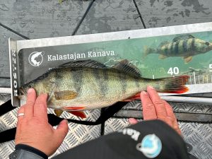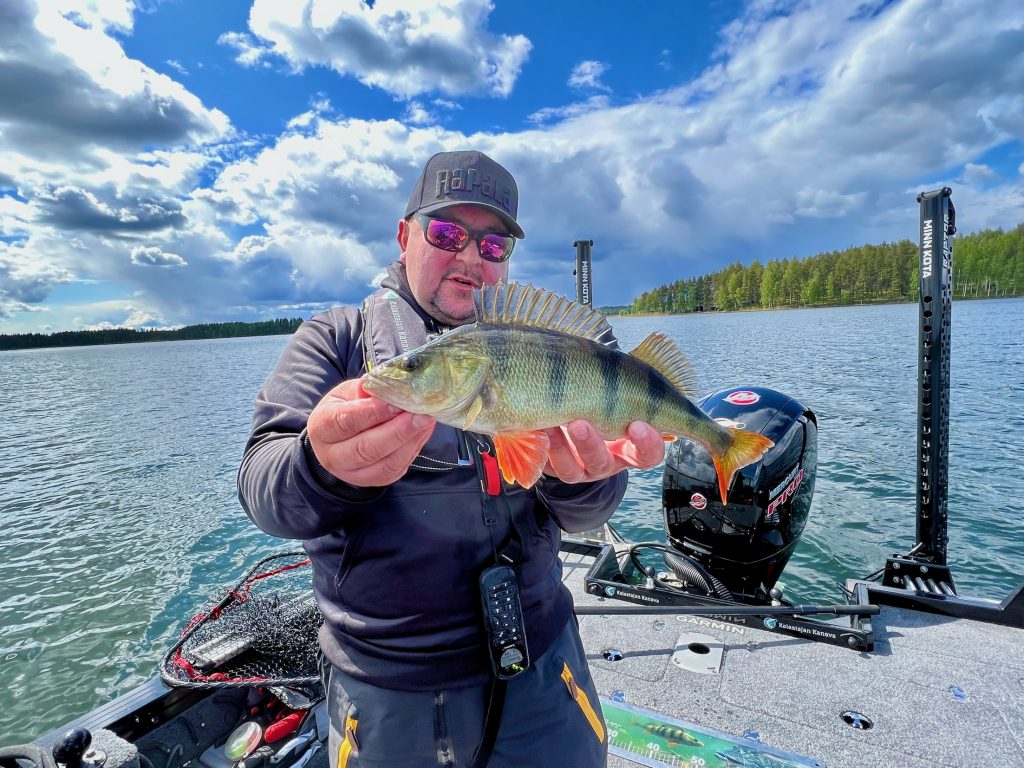 Heinäkuussa Näillä onnistut ahvenenkalastus -videon kuvauksissa nousi Jyrille kaksi yli 40 cm ahventa. Isompi ahven oli 47,5 cm ja 1,42 kg. Kala innostui Savage Gearin Fat Minnow T-Tail -jigistä koossa 7,5 cm.