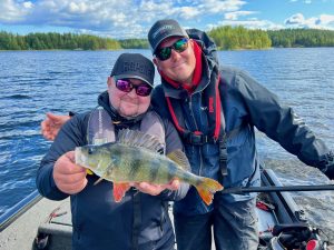 Syyskuussa kutsuimme myös yhteistyökumppaneita mökille tutustumaan Saimaan ahvenenkalastukseen. Moni päivä oli kelien osalta varsin haastava ja kalatkin olivat penseitä, mutta onneksi osuttiin satunnaisiin paremman syönnin pyrskeisiin. Tavoitettiin myös muutamia isomuksia, joista alla esimerkkejä.