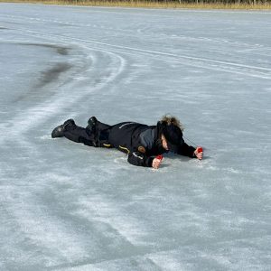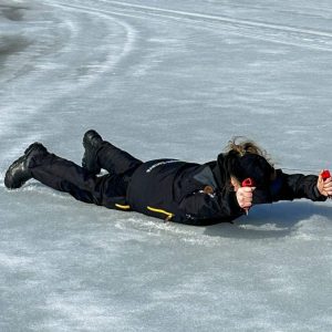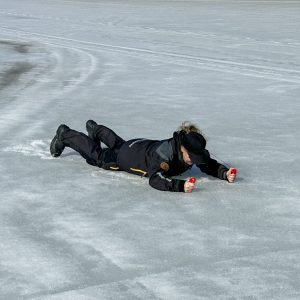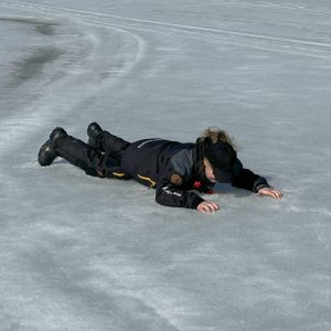 2) käy jäälle vatsallesi makaamaan. Ilman naskaleita on lähes mahdoton liikkua vaikka on tasaisella jäällä