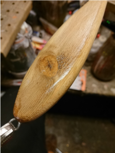 Kannattaa muistaa tarkistaa hioessa ja vuollessa, ettei jompikumpi kylki näytä epäsuhtaiselta toiseen nähden! Vuollaan ja hiotaan siis puuta tasaisesti pois aihiosta.