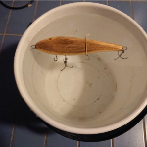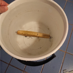 18. Tarkista painotus vielä kertaalleen ämpärissä. Itse lisäsin pienen määrän painoa vielä perään, jotta jerkki vajoaa vaakatasossa vedessä.