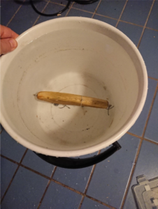 13. Täytä ämpäri vedellä ja laita aihio uimaan. Suosin vaaleaa ämpäriä paremman valaistuksen johdosta. Läpinäkyvyyttä en ole pitänyt välttämättömänä, koska aihion uppoamisasennon näkee ylhäältäkin.