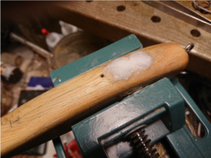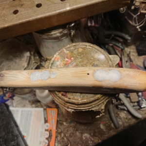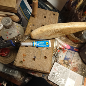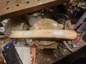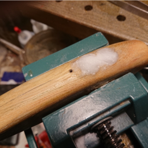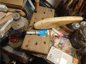 11. Kyljen kolot ja epätasaisuudet kannattaa ”tasoittaa” puupurulla ja pikaliimalla ja hioa korjauskohdat hyvin. Sivele toinen kerros pikaliimaa kyljen päälle tämän jälkeen.