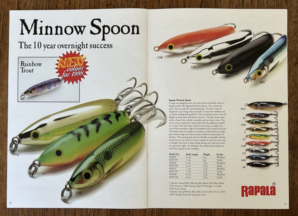 ”Minnow Spoonin muoto kun ei ole symmetrinen, sen mallintaminen oli tavallista vaappua selvästi vaikeampaa. Muotoa ja painon sijaintia jouduttiin hakemaan pitkään uudesta teknologiasta huolimatta”, Leppälä muistelee.