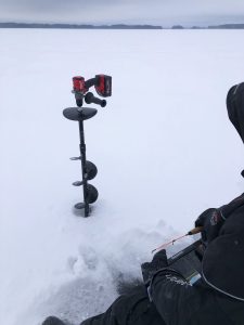 Kalastajan Kanavalla on käytössä 8-tuumainen konekäyttöön tarkoitettu Strikemaster Lite-Flite Lazer -jääpora yhdistettynä kompaktiin, mutta erittäin voimakkaaseen Millwaukeen Fuel2 -akkuporaan ja 8 Ah High Output -akkuun. Tällä setillä voi jättää jopa vara-akut kotiin. Strikemaster Lite-Flite Lazer -kairan kaveriksi tuli vielä viime talvena: Strikemaster Lithium 24 V Power Head -sähköväännin, jota voi käyttää kahdella kädellä. Sähkövääntimessä kannattaa olla vara-akku matkassa.