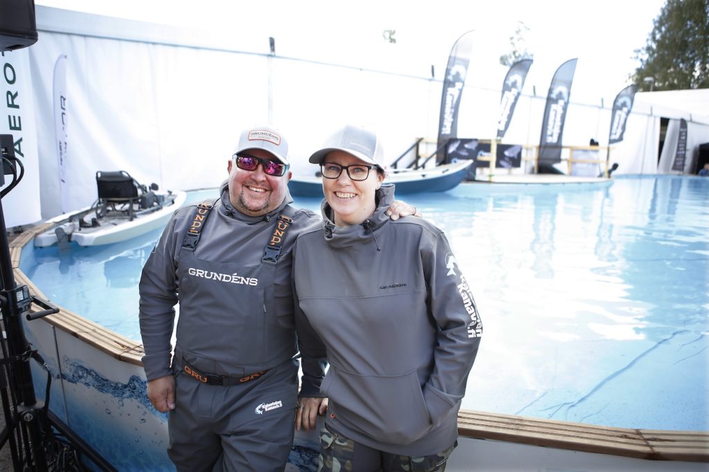 Kalastajan Kanavan Jyri ja Anne-Maarit tuottavat Pirkanmaan Erämessujen kalastusalueen ohjelman. Kuva Jenniina Nummela, Riihimäen Erämessut 2024