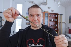 Elastomax on venyvä ja kestävä materiaali. Pyrstön saa lukittua kiinni jigipäähän liiman lisäksi pienellä kaistaleella runkoa.