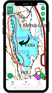 Karttaselaimen Plus-versio soveltuu kalapaikkojen kartoittamiseen hyvin. Ensimmäiseksi etsitään kohdejärvi näytölle. Jos asia ei muuten onnistu, niin nimihaulla ainakin saa vesistön esiin. Karttakuvista löytyvät polku-urat ja mahdolliset sopivat parkkipaikat. Joskus parkkipaikka voi näkyä pelkästään satelliittikuvassa. Korkeuskäyrät antavat vihiä, kuinka rannat jatkuvat veden alle, jos syvyyskäyriä ei ole tarjolla. Jos vesistöstä on olemassa syvyyskäyrät, ne näkyvät valitsemalla syvyyskäyrät Karttaselain sovelluksesta tai selainversiosta.
