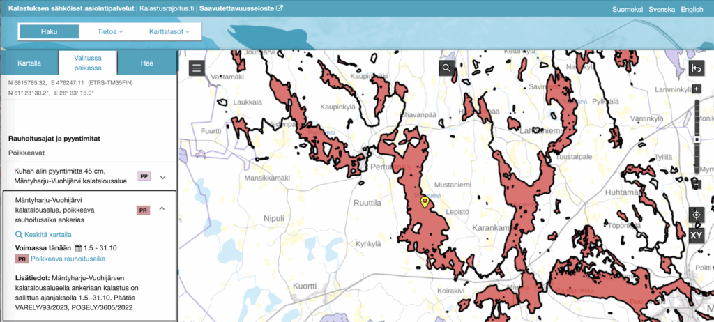 Esimerkiksi Pirkkalan kalatalousalueella ankeriaan pyynti on sallittua 1.5.‒30.9. vuosina 2023‒2025. Pekka Rintamaa sanoo, että Pirkkalan kalatalousalueella ankeriaan ottamisesta saaliiksi ei pidä potea huonoa omaatuntoa. Ankeriaat ovat istutettuja ja niillä edessä on useita kohtalokkaita voimalaitoksia ennen Itämerta. Alamittaa ankeriaalla ei ole.
