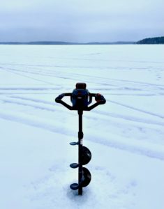Milwaukeen 18 V FDP3 -porakoneella yhdellä 5 Ah akulla on tällä kairalla kairattu jopa viitisenkymmentä reikää n. 40 cm jäähän.