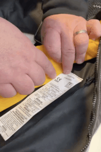 Traficom muistuttaa: ”pelastuspuvun, kelluntahaalarin tai sadevaatteiden sisään jäävä ilma saattaa estää 150N-liivien itseoikaisevuus toiminnon”.