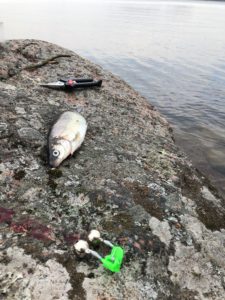 Mikäli madot unohtuu ostaa, eikä niitä esimerkiksi kuivuuden takia tahdo löytyä, ensimmäisen kalan voi hyvin saada kärpästä tai heinäsirkkaa käyttäen. Tämän jälkeen saaliskalan silmä toimii hyvänä syöttinä. Muista kuitenkin tappaa saaliskala ennen kuin alat kaivaa silmää sen päästä!