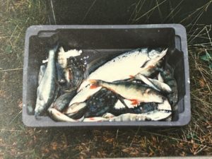 Toimittajan saama tasan kympin kala reilun 20 vuoden takaa. Vaikka kala ei vuotanut, se ei vaikuttanut selviävän. ”Väkisinvapauttaminen” johti kalan löytymiseen parin päivän päästä kuolleena.