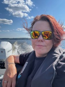 Anne-Maaritilla on sekä tavalliset lasit Gloryfyn kehyksillä ja moniteholinsseillä että moniteholinsseillä varustetut aurinkolasit polarisoiduilla ruskeilla linsseillä, joissa on peilipinta. ”Silmät eivät väsy ollenkaan niin herkästi eikä tee mieli nostaa laseja otsalle, kuten aiemmilla rilleillä, ” toteaa vesillä ja pöydän ääressä kameran, kännykän sekä tietokoneen kanssa töitä tekevä tuottaja.