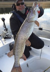 Sattumahauki jigivälineissä on tyypillinen kesän vahinkosaalis. Anne-Maarit ja 7 kg hauki.