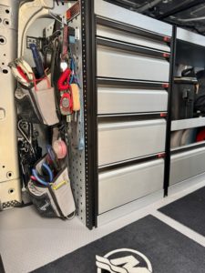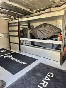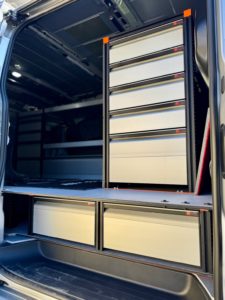 Carsport varusteli Kalastajan Kanavan umpiperäisen Transporterin konttiin ulosvedettäviä laatikostoja, hylykön sekä seiniin reikälevyjä tavaroiden kuljetusta varten. Lattiaa korotettiin, jotta tason alle saatiin sekä perään, että sivuoven kohdalle syvät vetolaatikot. Näiden lisäksi välilattian päällä on sivuovella on laatikosto kuvauskalustoa varten. Takaoven vasemmalla puolella on hyllykkö lisälaatikoston kera työkaluja ja muita tarvikkeita varten. Kattoon on asennettu kaksi tankoa, joiden päälle saa vavat täyspitkänä. Lisävarusteena autoon on asennettu kiinteä vetokoukku, jonka myötä Transporterilla voi vetää jopa 2,8 tonnin venetrailerikuormaa.
