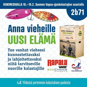 Ison suosion saanut Suomen Vapaa-ajankalastajien ja Rapalan Anna vieheille uusi elämä -keräys jatkuu Venemessuilla. Kerätyt lusikat ja vaaput saavat uuden elämän SVK:n jäsenseuroissa. Kunnostetut uistimet jäävät seurojen käyttöön ja jaettavaksi etenkin nuorille kalastusharrastuksen edistämiseksi ja uusien ihmisten kannustamiseksi kalastuksen pariin.