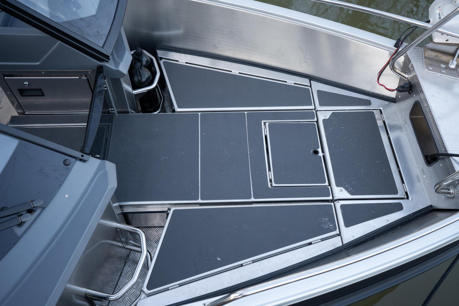 Veneen keulassa ja perässä on kalastuskannet, joiden alle sijoittuu runsaasti monipuolista säilytystilaa. Veneeseen on rakennettu säilytystilaa myös laitakoteloihin ja keulakannen alla on vapojen säilytystilaa. Näiden ansiosta kalastaja voi säilyttää ja kuljettaa lähes kaiken mahdollisen kalastusvarustuksen veneessään.