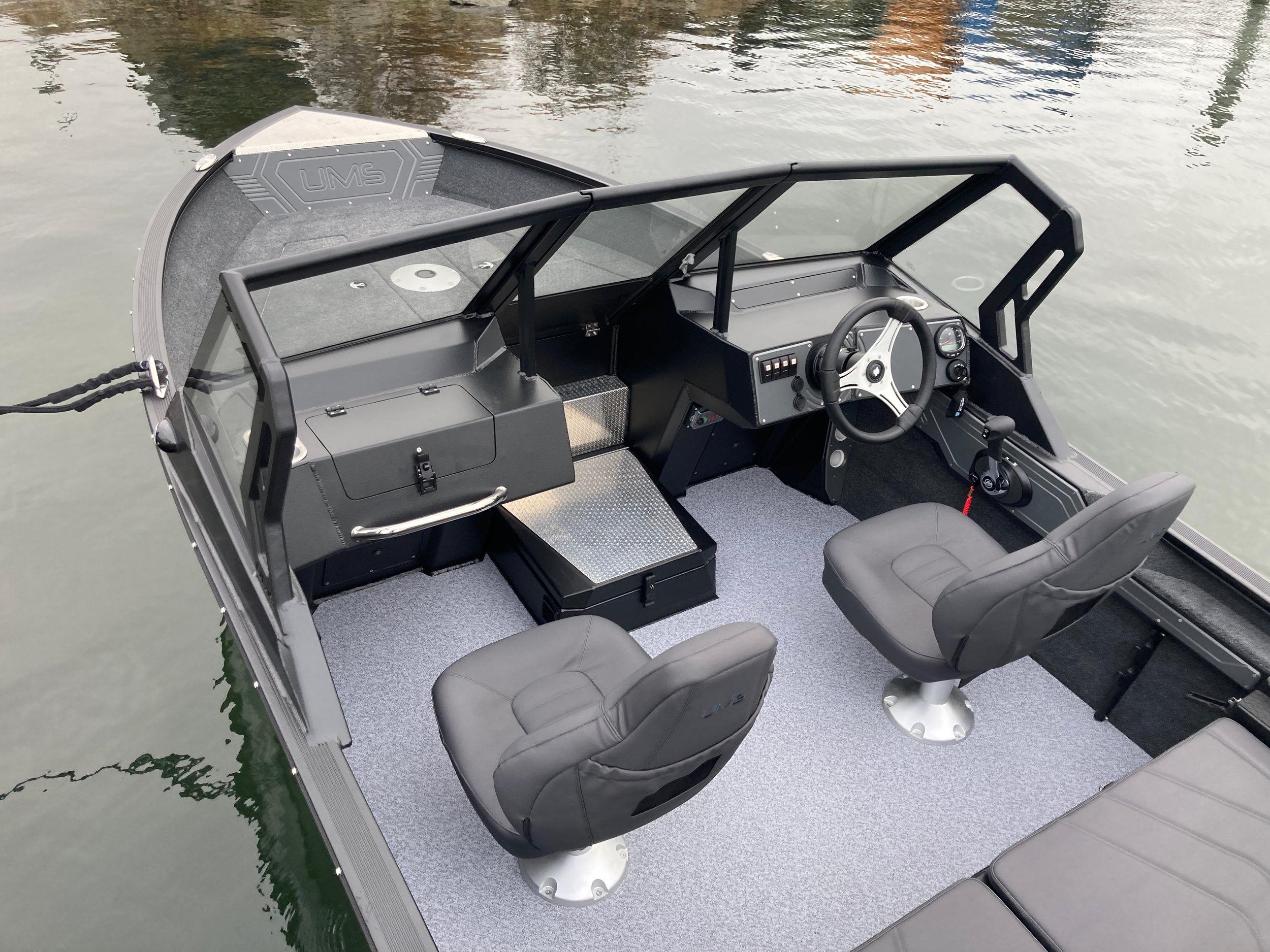 Istumapaikkoja saadaan lisää perän kalastustason alta. Runkoon sijoitetut muoviset asennusputket helpottavat veneen varustamista kalastusta varten. Veneen sisäpintojen materiaaliksi on useampia vaihtoehtoja ostajan toiveiden mukaan. UMS-veneet valmistetaan Ukrainassa.