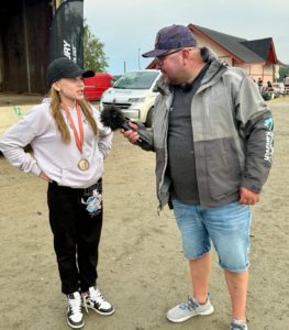 Vetouistelun SM -juniori Juulia Vuorinen Kalastajan Kanavan Jyri Kuusisalon haastattelussa.