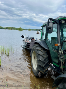 Kun on maanomistajaan yhteydessä saattaa saada apua vaikka veneen laskuun ilman veneluiskaa.